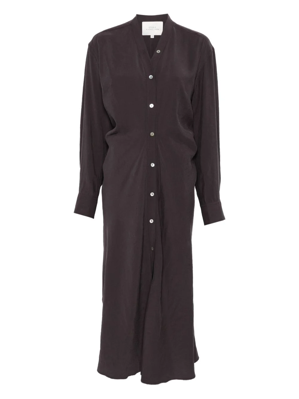 Fiore midi shirt dress Highlights - Brown - V-neck - Button closure - Gathered waist - Long sleeves Imported Composition Modal 85%, Polyester 15% SIZE & FIT Model measurements Height 5 ft 9 in(1.76 m) Bust/Chest 31.88 in(81 cm) Hips 35.43 in(90 cm) Waist 24.8 in(63 cm) Washing instructions Hand Wash