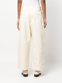high-waisted wide-leg trousers Highlights - Ecru - Cotton - Stretch-design - High-waisted - Dart detailing - Concealed front fastening - Two side slit pockets - Two rear welt pockets - Wide leg Imported Composition Cotton 100% SIZE & FIT Model measurements Height 5 ft 11 in(1.8 m) Bust/Chest 31.88 in(81 cm) Hips 35.03 in(89 cm) Waist 24.01 in(61 cm) FittingInformation Designed for a relaxed tapered cut, these trousers allow for a close fit at the waist and offer a loose fit at the thighs, with a closer fit toward the ankles Made from a midweight non-stretch fabric This piece fits true to size – take your usual size Washing instructions Machine Wash