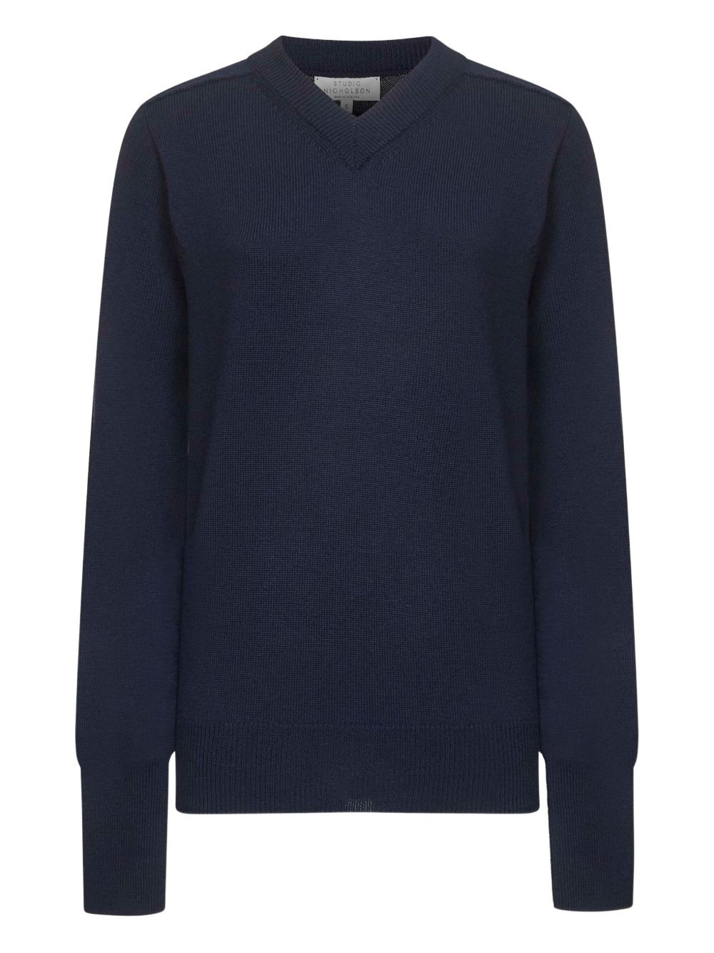 Inverness V-neck sweater Highlights - Blue - Ribbed v-neck - Long sleeves - Ribbed cuffs Made in United Kingdom Composition Merino 100% Washing instructions Hand Wash