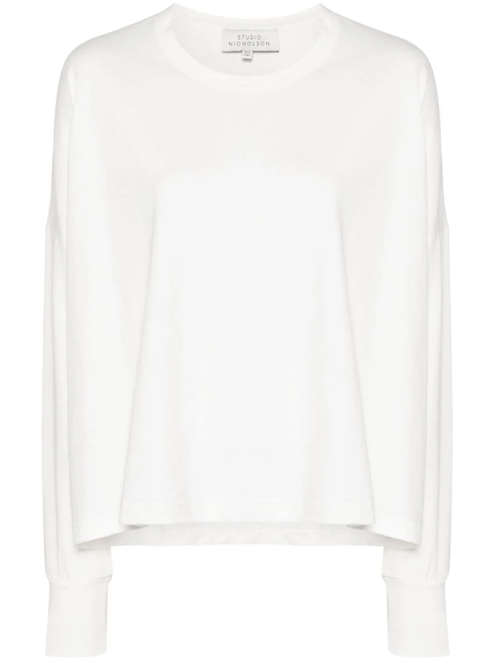 Loop T-shirt Highlights - White - Cotton - Lightweight jersey - Crew neck - Drop shoulder - Long sleeves - Ribbed cuffs - Straight hem Imported Composition Cotton 100% SIZE & FIT Model measurements Height 5 ft 10 in(1.77 m) Bust/Chest 32.28 in(82 cm) Hips 35.03 in(89 cm) Waist 25.19 in(64 cm) FittingInformation Designed to be unstructured, offering a loose fit throughout Made from a midweight non-stretch fabric, this piece offers minimal elasticity when worn This piece fits true to size – take your usual size