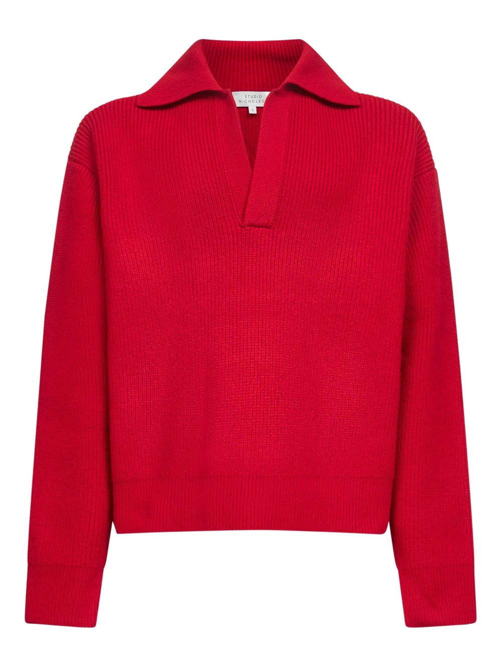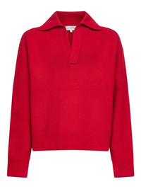 Nash ribbed open polo collar sweater Highlights - Red - Ribbed knit - Open polo collar - V-neck - Thumbholes - Dropped shoulders Imported Composition Merino 100% Washing instructions Hand Wash