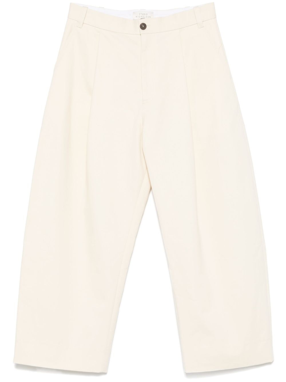 pleat-detail trousers Highlights - Ecru - Concealed fly and button fastening - Belt loops - Two side slit pockets - Two rear patch pockets Imported Composition Cotton 100% SIZE & FIT Model measurements Height 6 ft 2 in(1.87 m) Bust/Chest 37.79 in(96 cm) Hips 37.79 in(96 cm) Waist 30.31 in(77 cm) FittingInformation Designed for a relaxed tapered leg, allowing a comfortable loose fit above the knee with a closer fit towards the calves Made from a midweight non-stretch fabric
