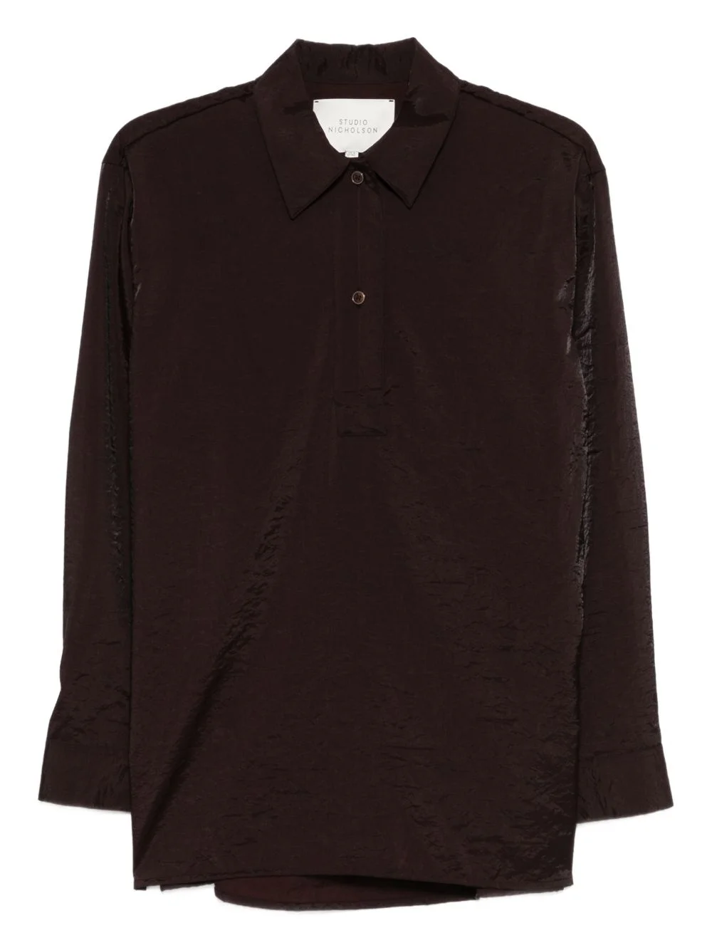 polo-collar shirt Highlights - Brown - Button fastening - Long sleeves - Point collar Imported Composition Polyamide 56%, Wool 44% SIZE & FIT Model measurements Height 5 ft 11 in(1.8 m) Bust/Chest 32.28 in(82 cm) Hips 36.22 in(92 cm) Waist 25.19 in(64 cm) Washing instructions Machine Wash