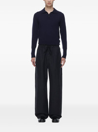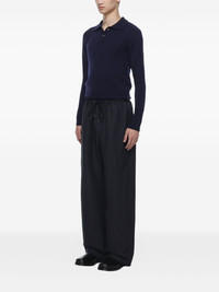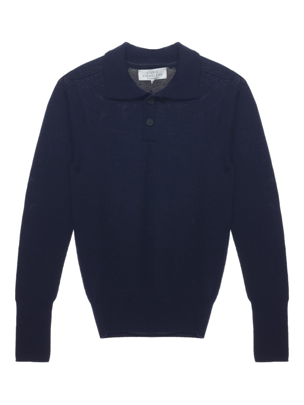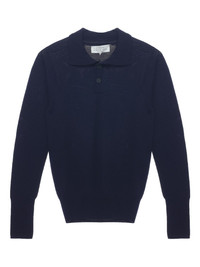 polo-neck wool polo shirt Highlights - Navy blue - Wool material - Polo collar - Long sleeves - Button fastening - Ribbed cuffs Made in United Kingdom Composition Merino 100% Washing instructions Read Manufacturer Guidelines