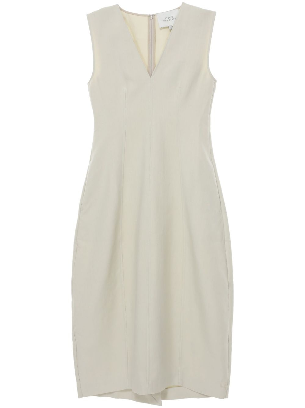 sculpted sleeveless maxi dress Highlights - White - Concealed rear zip fastening - Two side inset pockets - V-neck - Sleeveless Imported Composition Base: Polyamide 2% Cotton 98% SIZE & FIT FittingInformation Designed to be fitted across the shoulders, becoming looser as it falls Made from a midweight non-stretch fabric