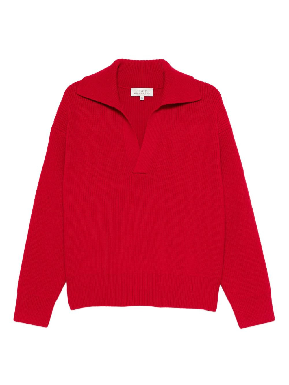 spread-collar wool jumper Highlights - Crimson red - Ribbed knit - V-neck - Spread collar Imported Composition Wool 100% Washing instructions Read Manufacturer Guidelines