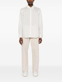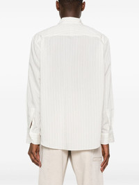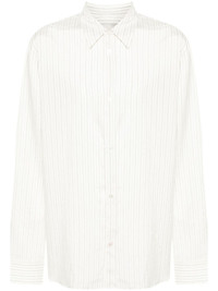 striped silk shirt Highlights - Cream white - Silk-cotton blend - Vertical stripe pattern - Classic collar - Long sleeves with buttoned cuffs - Curved hem - Front button placket Imported Composition Silk 96%, Cotton 4% SIZE & FIT Model measurements Height 6 ft 2 in(1.88 m) Bust/Chest 36.61 in(93 cm) Hips 35.82 in(91 cm) Waist 27.95 in(71 cm) FittingInformation Designed to be unstructured, offering a loose fit throughout Made from a midweight non-stretch fabric This piece fits true to size – take your usual size Washing instructions Dry Clean Only