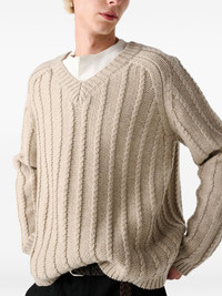 Sussex cable-knit V-neck sweater Highlights - Oatmeal - Cable knit - V-neck - Raglan sleeves - Ribbed trims Imported Composition Virgin Wool 100% Washing instructions Hand Wash