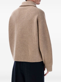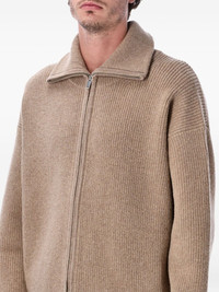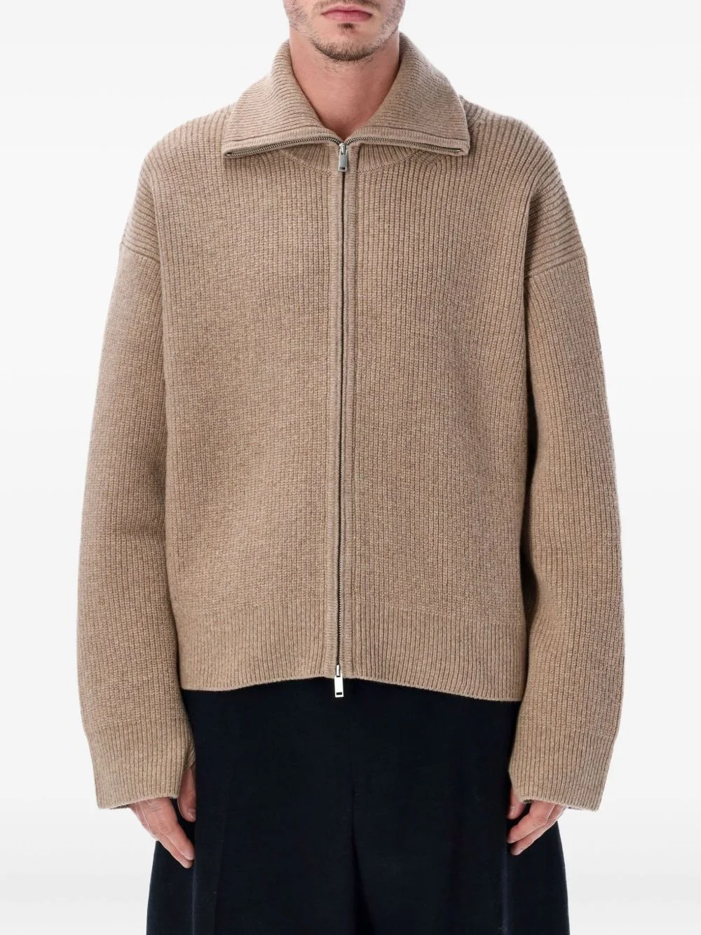 zip knitwear Highlights - Oatmeal - Ribbed knit - Zip fastening - Point collar - Long sleeves - Straight hem Imported Composition RWS Merino Wool 100%