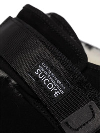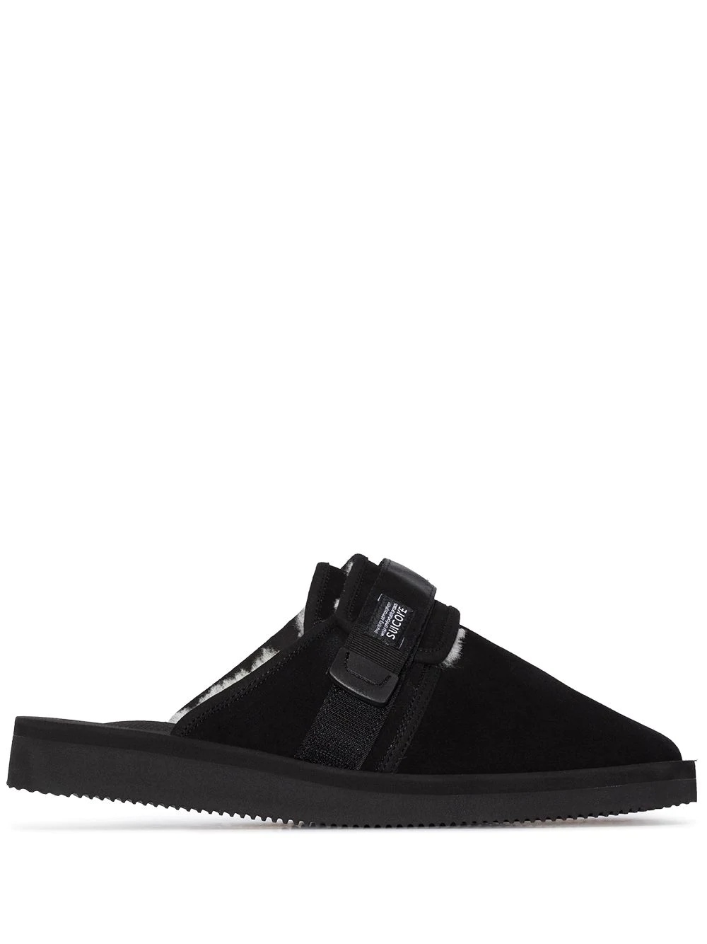 Zavo shearling-trim slippers Is there anything better than getting home at the of long working day? There is. Slipping into these Suicoke slippers and your real self. See you tomorrow. Highlights - Black - Suede - Faux-shearling lining - Logo patch to the front - Round toe - Front touch-strap fastening - Slip-on style - Flat rubber sole Imported Composition Suede 100% SIZE & FIT Model measurements Height 5 ft 11 in(1.8 m) Bust/Chest 31.49 in(80 cm) Hips 36.22 in(92 cm) Waist 25.59 in(65 cm) FittingInformation This piece fits small – you might want to get one size up Measurement HEEL 1.18 in(3 cm) Sole height 0.78 in(2 cm)