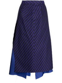 raw-hem striped skirt sulvam's playfully deconstructed nature is encapsulated in this SS23 skirt. Purple and black-hued diagonal stripes embolden the straight silhouette, while an artfully layered hem with raw-cut edges lends the garment its distinct DNA. Highlights - Purple - Diagonal stripe print - Pleat detailing - Layered effect - High waist - Raw-cut hem - Mid-length Imported Composition Body: Polyester 56%, Polycotton 44% Lining: Cupro 100% SIZE & FIT Model measurements Height 5 ft 9 in(1.76 m) Bust/Chest 31.1 in(79 cm) Hips 35.03 in(89 cm) Waist 24.4 in(62 cm) FittingInformation This mini-length skirt is intended to be worn high on the waist Made from a midweight non-stretch fabric This piece fits true to size – take your usual size