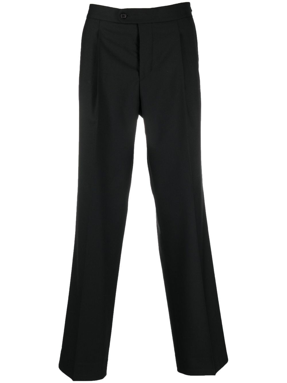 cropped straight-leg trousers black tailored cut straight leg cropped mid-rise pressed crease concealed front fastening two diagonal pockets to the sides two rear button-fastening jetted pockets Imported Composition Polyester 54%, Wool 44%, Spandex/Elastane 2% SIZE & FIT Model measurements Height 6 ft 2 in(1.88 m) Bust/Chest 36.61 in(93 cm) Hips 35.82 in(91 cm) Waist 27.95 in(71 cm) FittingInformation This piece fits true to size. We recommend you get your regular size Designed for a slim fit at the waist and loose over the leg Made with a mid-weight non-stretch fabric