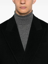 double-breasted coat Highlights - Black - Wool blend - Double-breasted button fastening - Peak lapels - Chest welt pocket - Shoulder pads - Long sleeves - Buttoned cuffs - Two side flap pockets - Central rear vent - Internal jetted pockets - Full lining - Straight hem Imported Composition Wool 65%, Polyamide 25%, Cashmere 10% SIZE & FIT Model measurements Height 6 ft 1 in(1.86 m) Bust/Chest 36.61 in(93 cm) Hips 37 in(94 cm) Waist 28.74 in(73 cm) FittingInformation Designed to be unstructured, offering a loose fit throughout The vented hem offers movement at the rear Made from a midweight non-stretch fabric