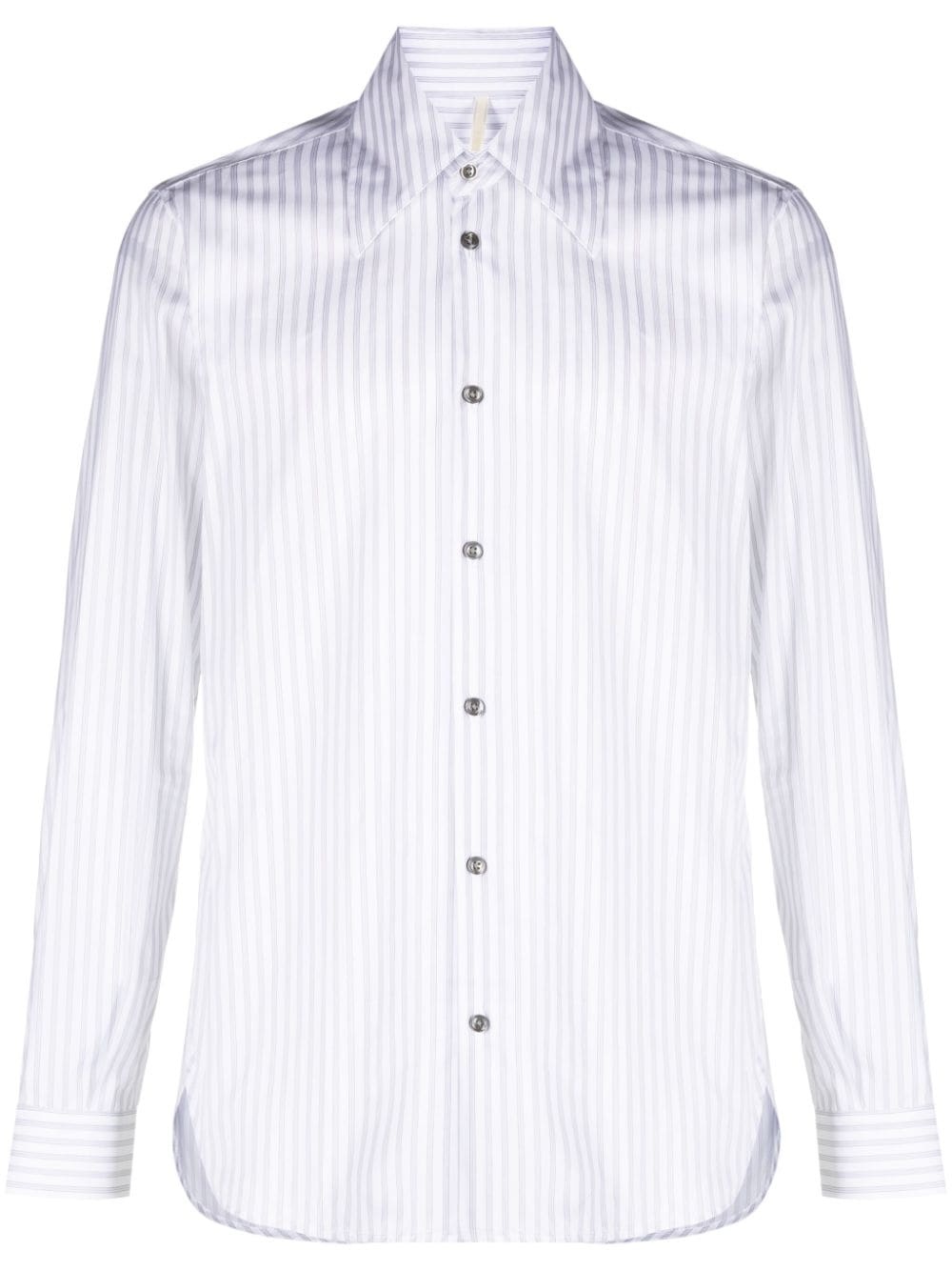 Please striped cotton shirt Highlights - White/light grey - Cotton - Vertical stripe print - Classic collar - Front button fastening - Long sleeves - Buttoned cuffs - Curved hem Imported Composition Cotton 100% SIZE & FIT Model measurements Height 6 ft 2 in(1.89 m) Bust/Chest 38.97 in(99 cm) Hips 38.18 in(97 cm) Waist 32.28 in(82 cm) Measurement CHEST 45.66 in(116 cm) SLEEVE LENGTH 25.19 in(64 cm) LENGTH 31.49 in(80 cm) WAIST 45.66 in(116 cm) Shoulder Width 20.07 in(51 cm) FittingInformation Designed for a regular fit, allowing for a comfortably loose fit throughout the body Constructed with narrow shoulders Made from a midweight non-stretch fabric This piece fits true to size – take your usual size Washing instructions Machine Wash