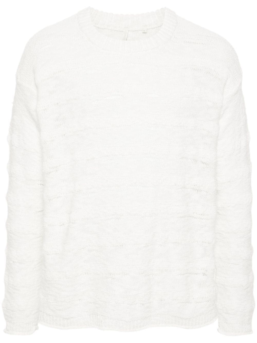 Repair crew-neck jumper Highlights - Ivory white - Cotton blend - Purl knit - Horizontal stripe pattern - Crew neck - Drop shoulder - Long sleeves - Ribbed cuffs and hem - Unlined Imported Composition Cotton 65%, Acrylic 35% SIZE & FIT Model measurements Height 6 ft 0 in(1.84 m) Bust/Chest 35.82 in(91 cm) Hips 37 in(94 cm) Waist 28.34 in(72 cm) FittingInformation Designed for a relaxed fit, this piece allows for comfort and movement when worn Made with a midweight knit, this piece offers some stretch This piece fits true to size – take your usual size Washing instructions Machine Wash