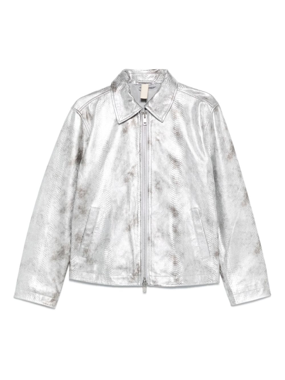 snakeskin-effect zip-front jacket Highlights - Silver - Snakeskin effect - Zip front - Long sleeves - Collared neck - Welt pockets Imported Composition Polyester 100%, Goat Skin 100% SIZE & FIT Model measurements Height 6 ft 2 in(1.88 m) Bust/Chest 37.4 in(95 cm) Hips 38.58 in(98 cm) Waist 31.1 in(79 cm) Washing instructions Specialist Cleaning