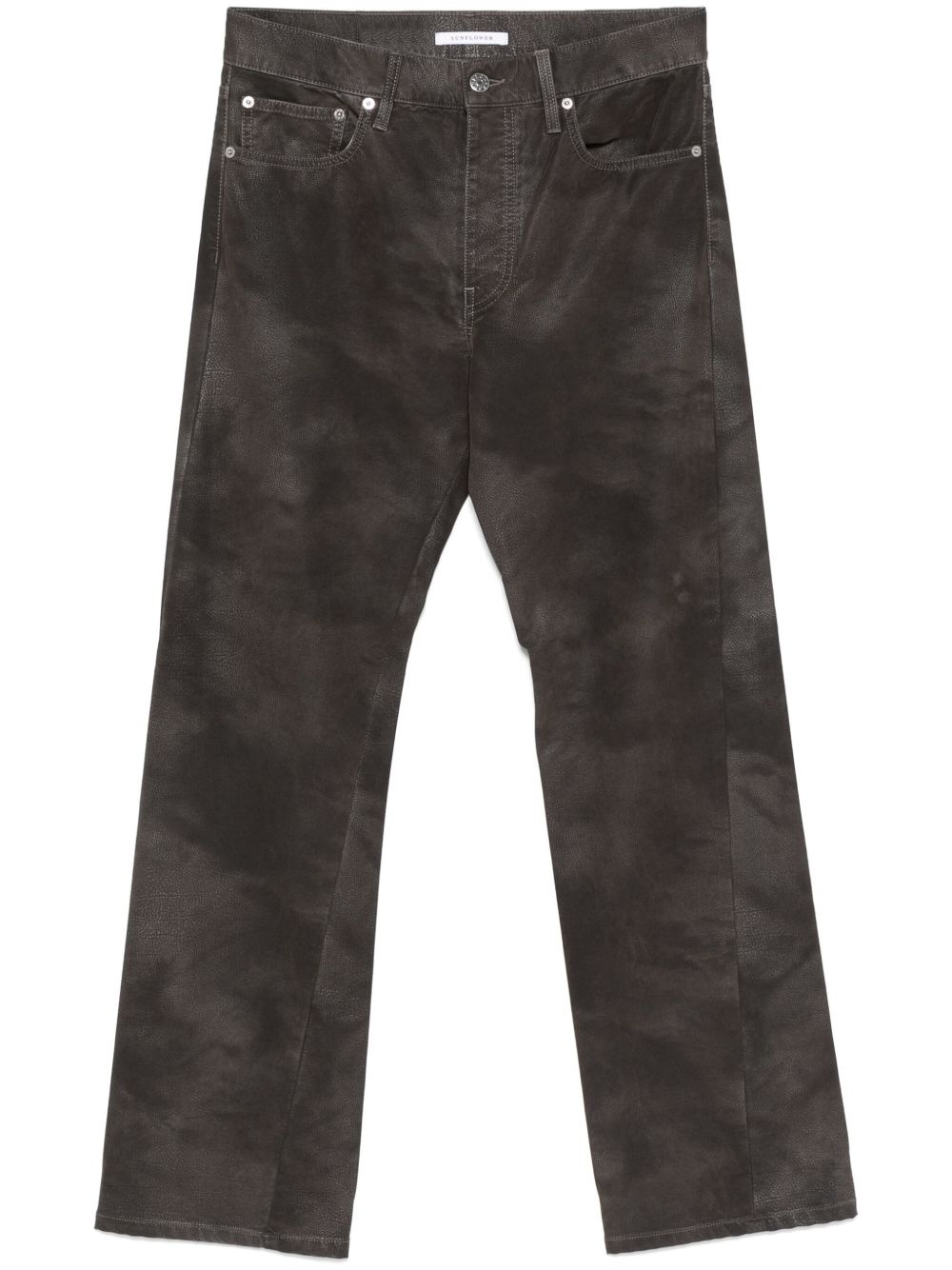 Straight Twist trousers Highlights - Charcoal grey - Faux leather - Button fly fastening - Belt loops - Classic five pockets - Logo patch to the rear - Straight leg Made in Italy Composition Polyurethane 63%, Viscose 28%, Other fibres 5%, Polyamide 4% SIZE & FIT Model measurements Height 6 ft 2 in(1.88 m) Bust/Chest 36.61 in(93 cm) Hips 35.82 in(91 cm) Waist 27.95 in(71 cm) FittingInformation Designed for a straight-leg, allowing for an unrestricted and comfortable fit over the leg Made from a midweight non-stretch fabric, this piece offers minimal elasticity when worn