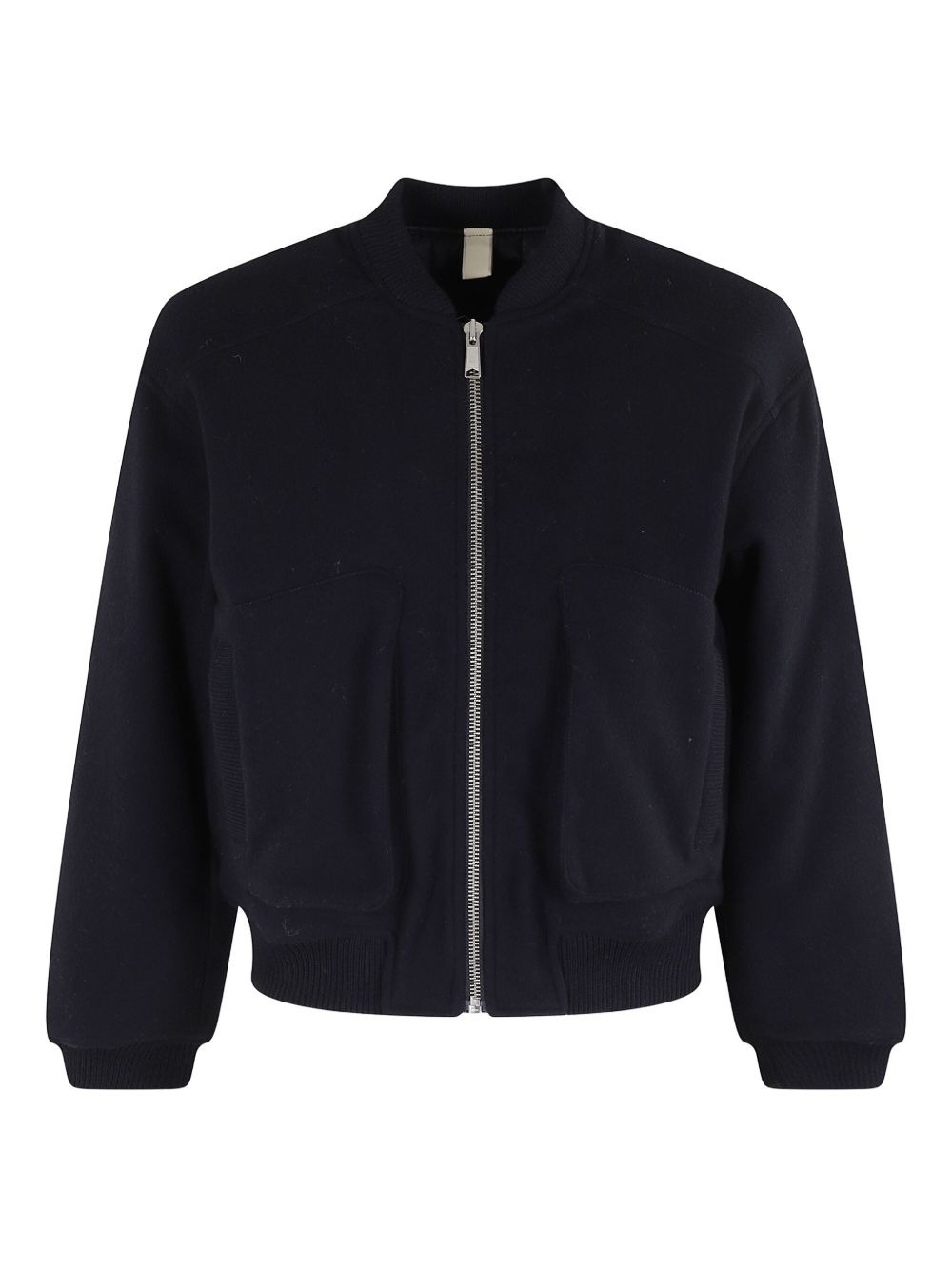 zip-up bomber jacket Highlights - Blue - Wool blend - Front zip fastening - Long sleeves - Elasticated cuffs and hem Imported Composition Wool 75%, Polyamide 25% Washing instructions Read Manufacturer Guidelines