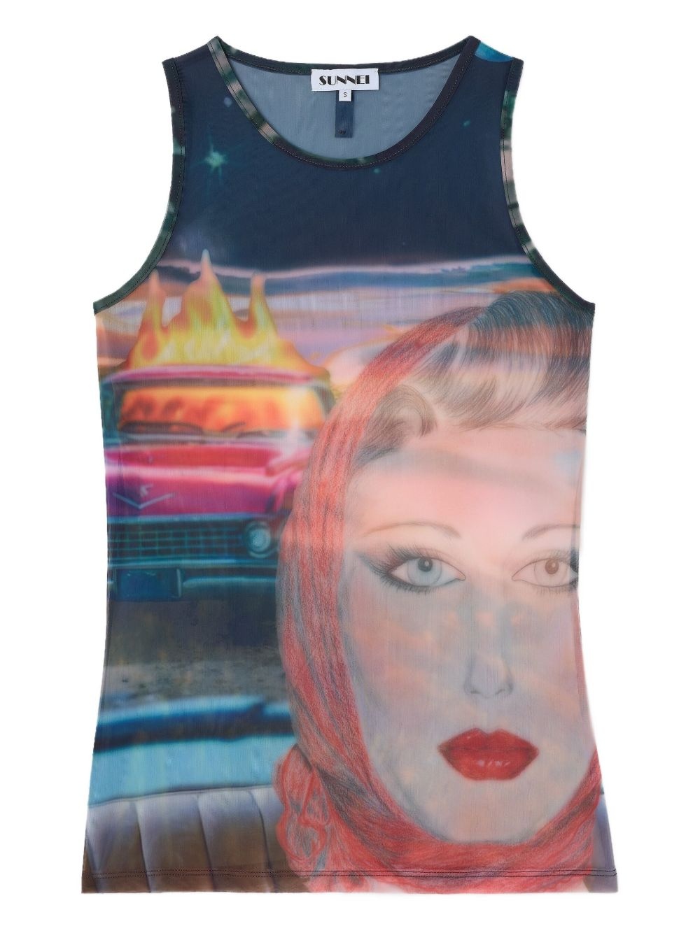 Annemarie-print sheer top Highlights - Blue - Annemarie-print - Round neck - Sleeveless Imported Composition Polyamide 75%, Elastane 25%