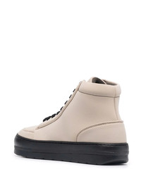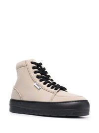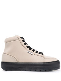chunky-sole high top sneakers beige logo tag front lace-up fastening round toe chunky sole branded insole Made in Italy Composition Outer: Fabric 100% Lining: Fabric 100%, Polyurethane 100% Sole: Rubber 100% SIZE & FIT Measurement HEEL 1.37 in(3.5 cm) HEIGHT 3.93 in(10 cm) Sole height 1.18 in(3 cm)