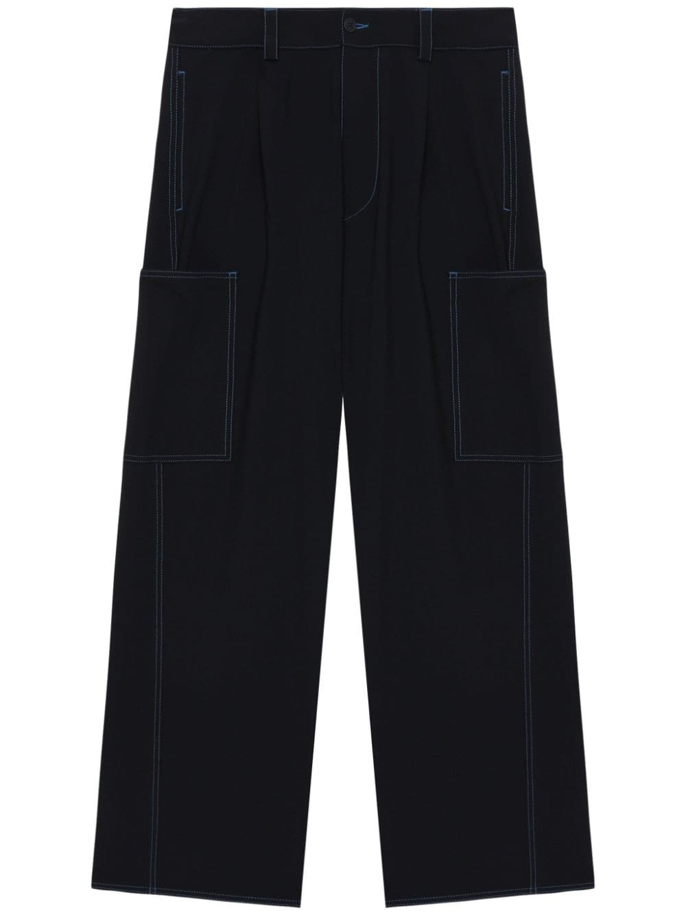 contrast-stitching wide-leg trousers Highlights - Black - Stretch-design - Contrast stitching - Front button fastening - Two side slit pockets - Two side patch pockets - Wide leg Made in Italy Composition Polyester 53%, Virgin Wool 43%, Elastane 4%