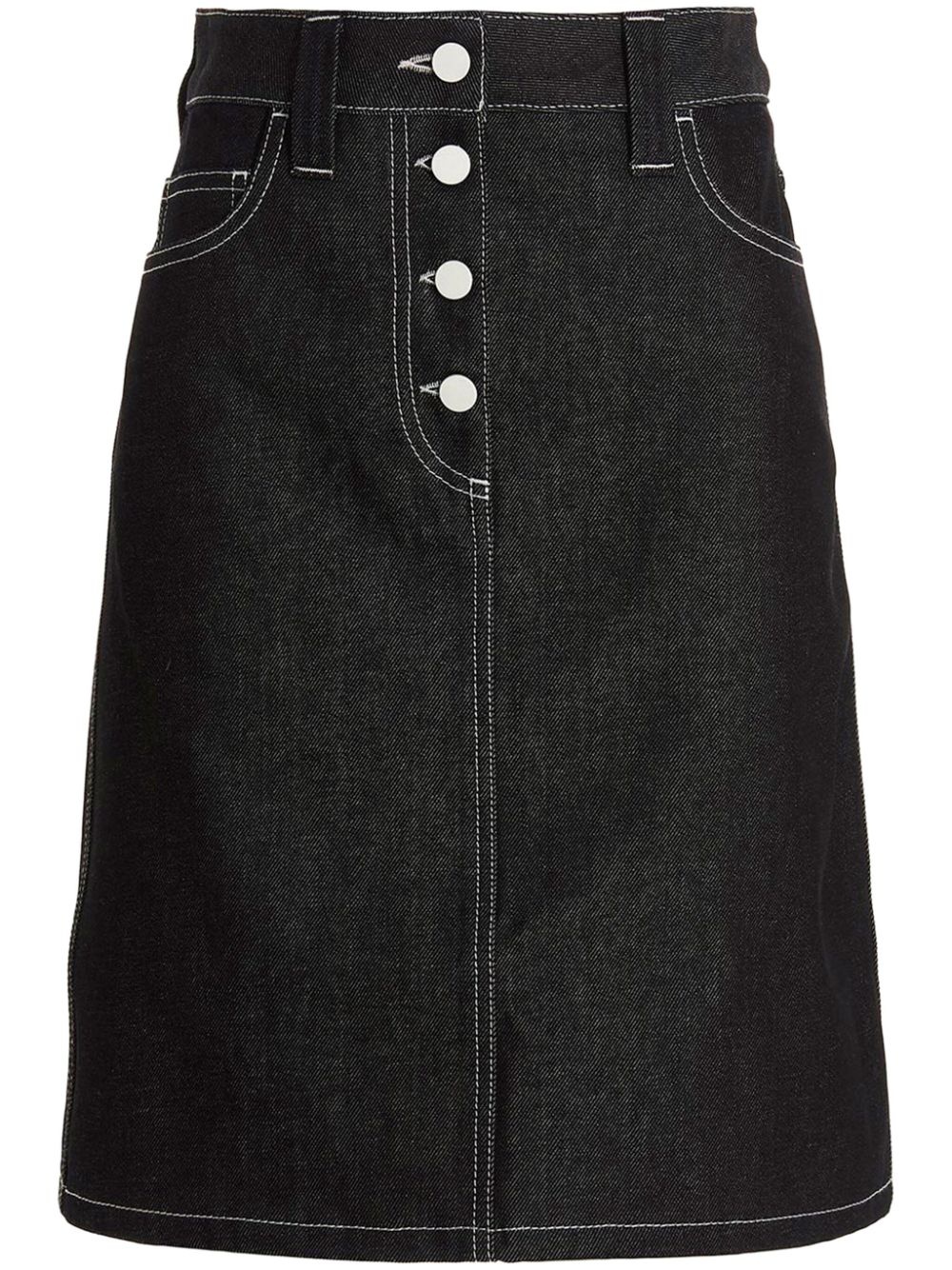 denim midi skirt Highlights - Black - Front button fastening - Belt loops - Classic five pockets - Logo patch to the rear Made in Italy Composition Fabric 100% Washing instructions Read Manufacturer Guidelines