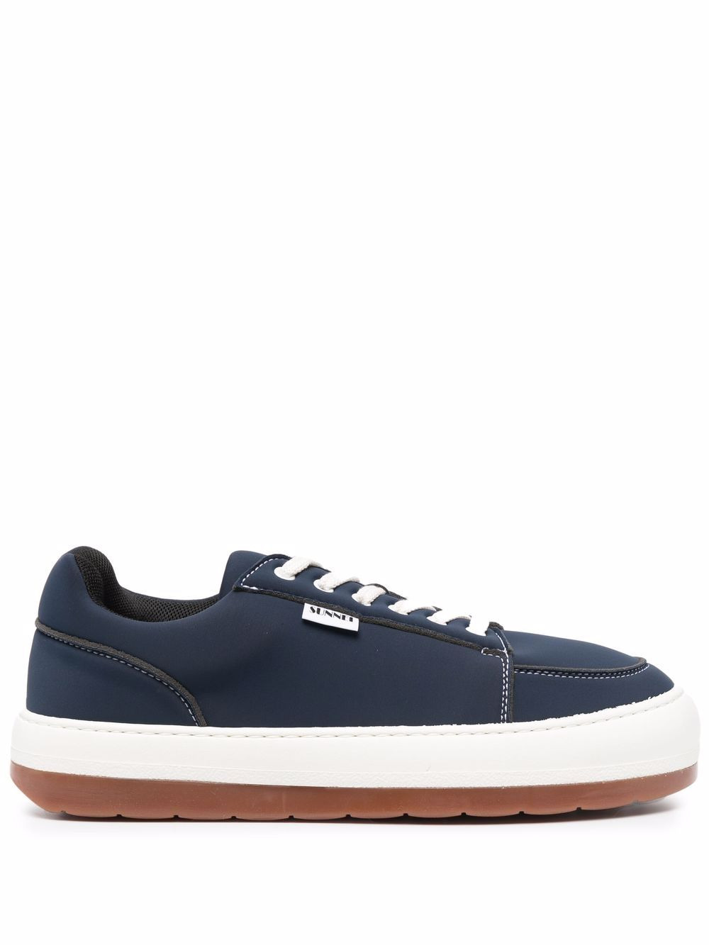 Dreamy low-top sneakers navy fabric/rubber logo patch to the side front lace-up fastening round toe flat sole Made in Italy Composition Lining: Fabric 100% Sole: Rubber 100% Outer: Fabric 100% SIZE & FIT Measurement HEEL 1.57 in(4 cm) Sole height 1.37 in(3.5 cm)