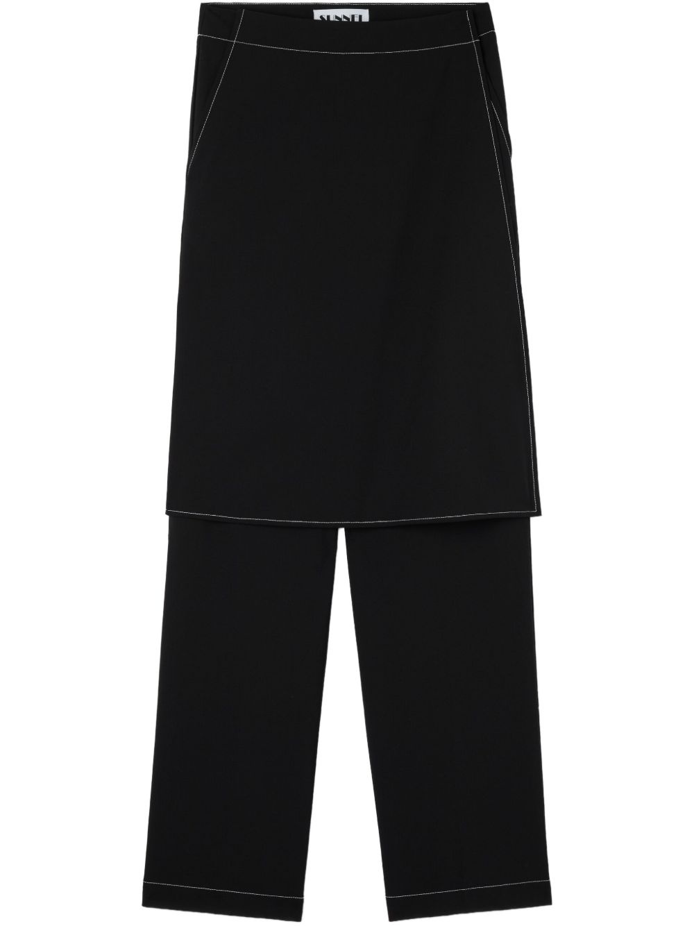 layered-design trousers Highlights - Black - Concealed front fastening - Layered design - Straight leg - When buying this unisex item, keep in mind that it is graded in standard men's sizing. Made in Italy Composition Polyester 53%, Virgin Wool 43%, Elastane 4% Washing instructions Read Manufacturer Guidelines