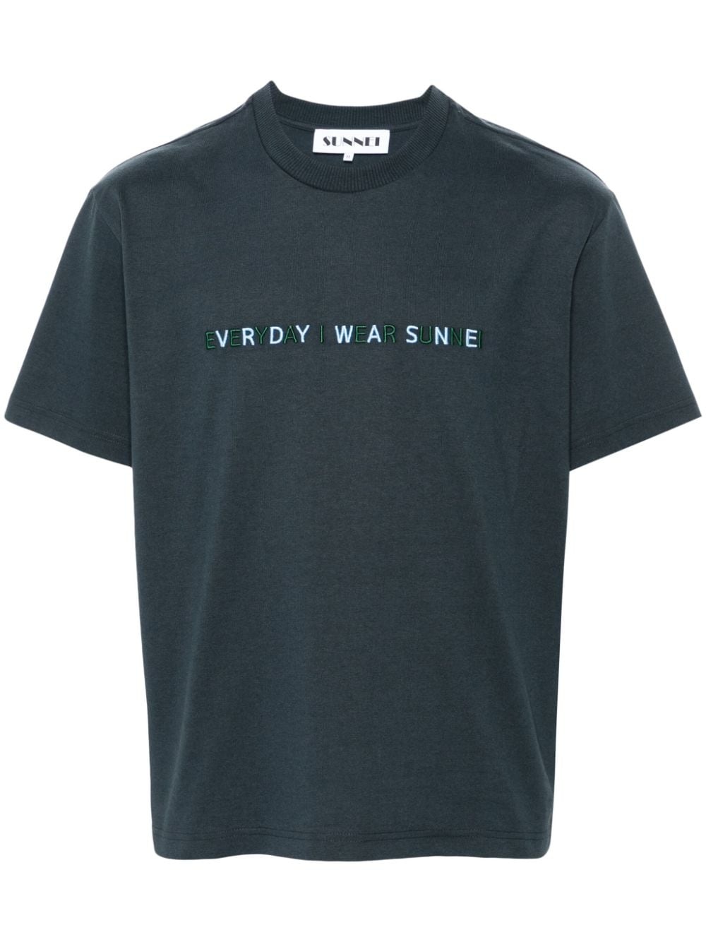 logo-embroidered T-shirt Highlights - Navy blue - Organic cotton - Jersey texture - Crew neck - Short sleeves - Embroidered logo at the chest - Straight hem Imported Composition Organic Cotton 100% SIZE & FIT Model measurements Height 6 ft 1 in(1.86 m) Bust/Chest 36.61 in(93 cm) Hips 37 in(94 cm) Waist 28.74 in(73 cm) FittingInformation Designed to be unstructured, offering a loose fit throughout Made from a midweight non-stretch fabric, this piece offers minimal elasticity when worn This piece fits true to size – take your usual size