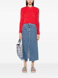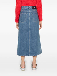 logo-patch denim skirt Highlights - Medium blue - Cotton - Denim - Belt loops - Classic five pockets - Front slit - Logo patch to the rear - Mid-length - Straight hem - Front button and zip fastening Made in Italy Composition Cotton 100% SIZE & FIT Model measurements Height 5 ft 10 in(1.78 m) Bust/Chest 33.85 in(86 cm) Hips 36.61 in(93 cm) Waist 26.77 in(68 cm) FittingInformation This midi-length skirt is intended to be worn just below the waist The vented hem offers movement at the rear Sturdy and hard-wearing, this denim piece offers no stretch This piece fits true to size – take your usual size