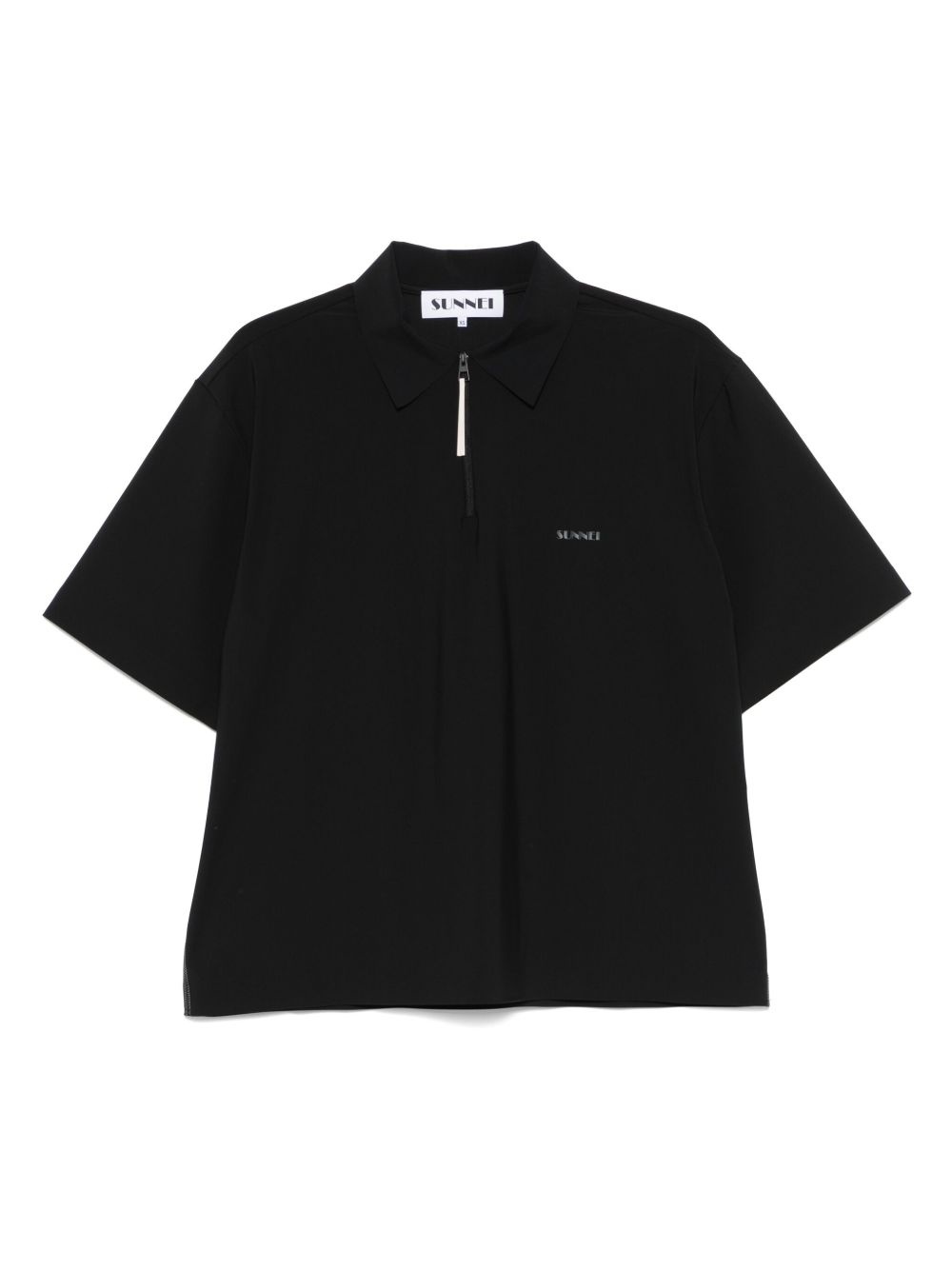 logo-print polo shirt Highlights - Black - Short front zip fastening - Classic collar - Short sleeves Imported Composition Polyamide 60%, Elastane 40% Washing instructions Machine Wash