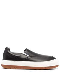 panelled slip-on leather sneakers black leather slip-on style panelled design almond toe logo patch to the side flat rubber sole Made in Italy Composition Leather 100% SIZE & FIT Measurement HEEL 1.57 in(4 cm) Sole height 1.37 in(3.5 cm)