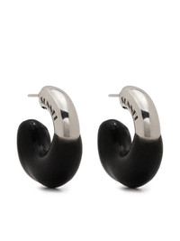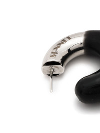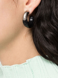 Rubberized Small Earrings silver/ black medium hoop design two-tone design These earrings come as a pair. Made in Italy SIZE & FIT Model measurements Height 5 ft 10 in(1.79 m) Bust/Chest 33.07 in(84 cm) Hips 35.82 in(91 cm) Waist 24.01 in(61 cm) Measurement HEIGHT 1.25 in(3.2 cm) Weight (single earring) 6 g(6 g) WIDTH 0.35 in(0.9 cm)