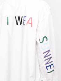 slogan loose fittin cotton shirt Highlights - White - Cotton - Slogan print to the rear - Button-down collar - Two front pouch pockets - When buying this unisex item, keep in mind that it is graded in standard men's sizing. Made in Italy Composition Cotton 100% SIZE & FIT Model measurements Height 6 ft 2 in(1.89 m) Bust/Chest 35.43 in(90 cm) Hips 36.61 in(93 cm) Waist 28.74 in(73 cm) FittingInformation This piece fits true to size. We recommend you get your regular size Cut for a loose fit Made with a mid-weight non-stretch fabric Washing instructions Machine Wash