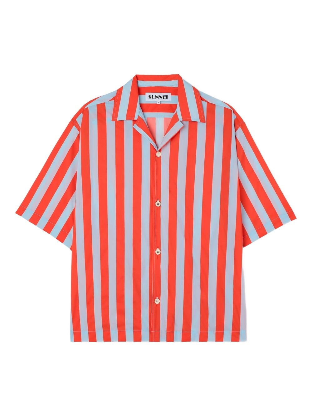 stripe short-sleeve shirt Highlights - Red - Vertical stripes - Camp collar - Button fastening - Short sleeves Imported Composition Polyamide 90%, Elastane 10% Washing instructions Read Manufacturer Guidelines