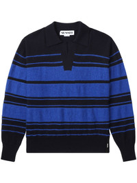 STRIPED KNIT LONSGLEEVE POLO / dark blue & electric blue