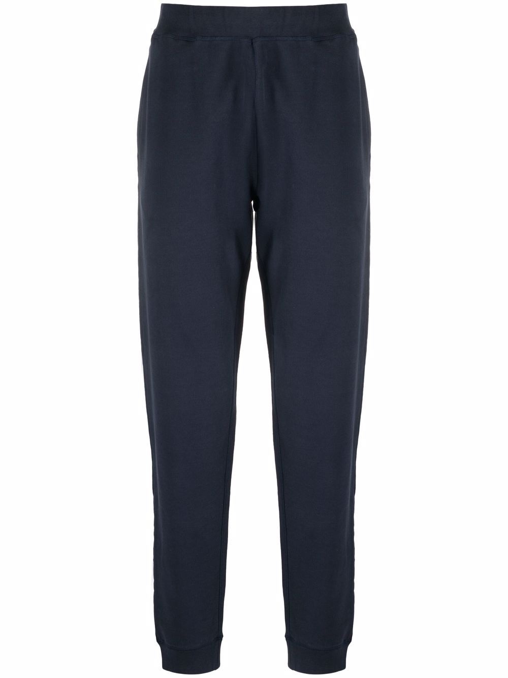 elasticated-waist trousers navy blue cotton elasticated waistband two side inset pockets rear patch pocket elasticated ankles Imported Composition Cotton 100% SIZE & FIT Model measurements Height 6 ft 2 in(1.89 m) Bust/Chest 35.43 in(90 cm) Hips 36.61 in(93 cm) Waist 28.74 in(73 cm) FittingInformation This piece fits true to size. We recommend you get your regular size Cut for a relaxed fit Made with a mid-weight fabric Washing instructions Machine Wash