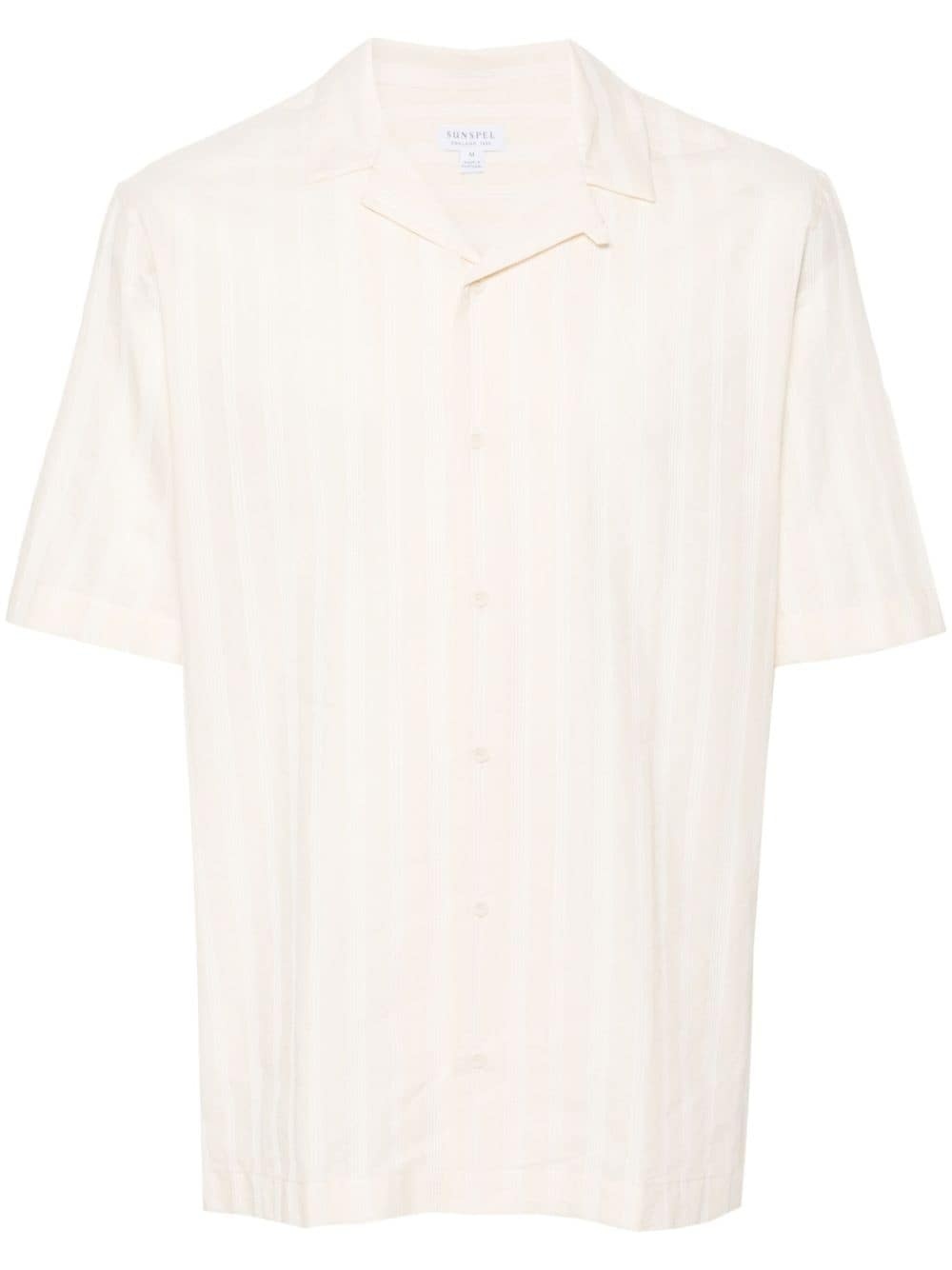 embroidered-stripes cotton shirt Highlights - Ecru/white - Cotton - Poplin texture - Vertical stripe embroidery - Camp collar - Short sleeves - Short side slits - Front button fastening - Straight hem - Unlined Imported Composition Cotton 100% SIZE & FIT Model measurements Height 6 ft 2 in(1.87 m) Bust/Chest 36.61 in(93 cm) Hips 35.03 in(89 cm) Waist 27.95 in(71 cm) Measurement CHEST 39.37 in(100 cm) SLEEVE LENGTH 11.02 in(28 cm) LENGTH 28.74 in(73 cm) WAIST 40.94 in(104 cm) Shoulder Width 16.53 in(42 cm) FittingInformation Designed for a relaxed fit, this piece allows for comfort and movement when worn Made from a midweight non-stretch fabric This piece fits true to size – take your usual size