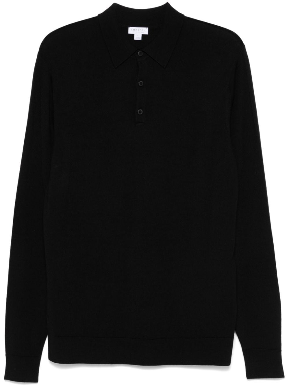 extra‑fine merino polo shirt Highlights - Black - Merino wool - Fine knit - Short front button fastening - Polo collar - Long sleeves - Ribbed cuffs and hem Imported Composition Merino 100% SIZE & FIT Model measurements Height 6 ft 2 in(1.87 m) Bust/Chest 36.41 in(92.5 cm) Hips 37 in(94 cm) Waist 29.52 in(75 cm) FittingInformation Designed for a relaxed fit, this piece allows for comfort and movement when worn Made with a lightweight knit, this piece offers some stretch
