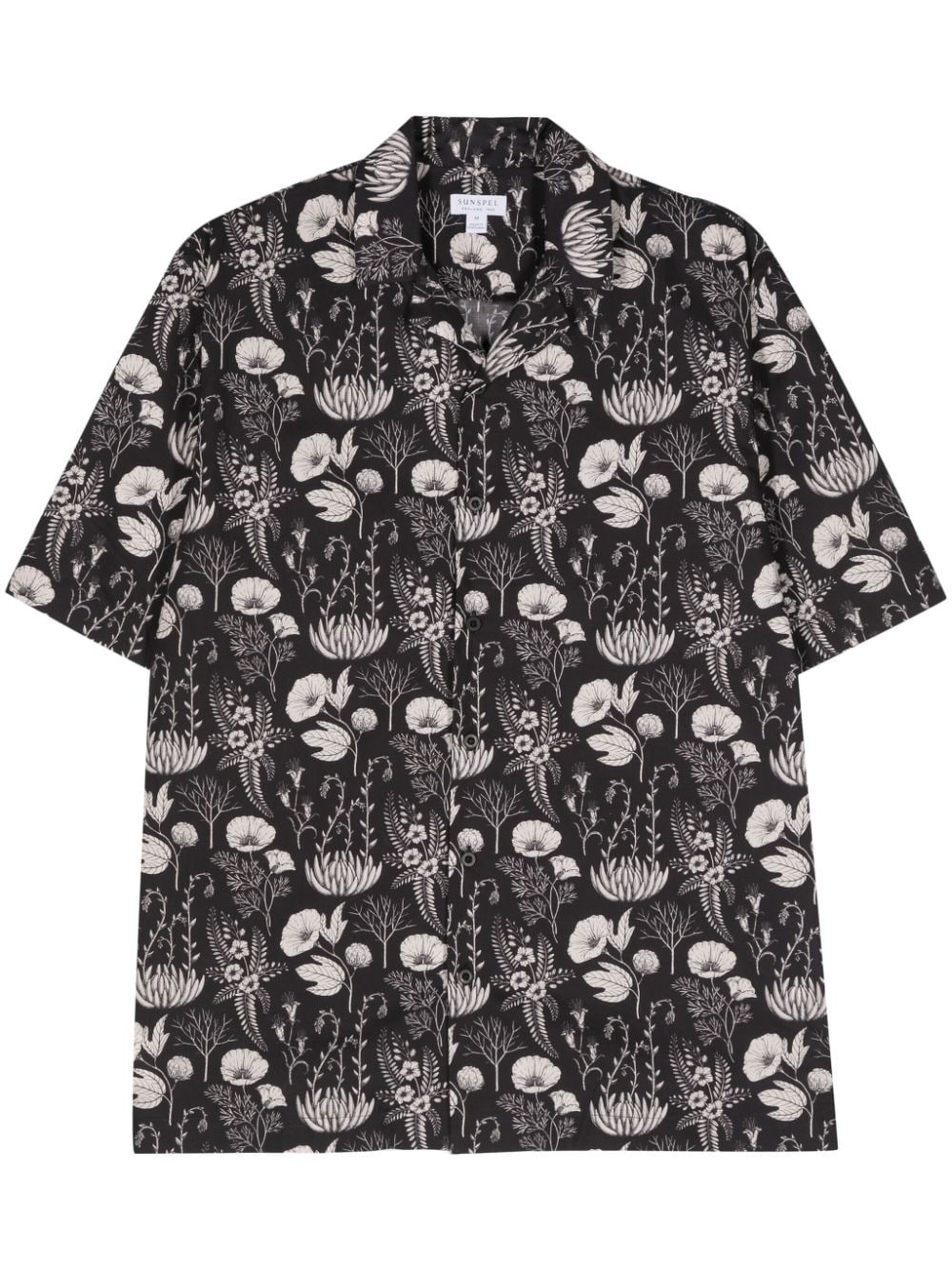 floral-print cotton shirt Highlights - Black/beige - Cotton - Tonal stitching - All-over floral print - Camp collar - Short sleeves - Short side slits - Straight hem - Front button fastening Imported Composition Cotton 100% SIZE & FIT FittingInformation Designed for a relaxed fit, this piece allows for comfort and movement when worn Made from a lightweight non-stretch fabric This piece fits true to size – take your usual size