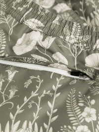 leaf-print swim shorts Highlights - Olive green/light beige - Recycled polyester - All-over botanical print - Two side slash pockets - Short side slits - Thigh-length - Rear zip-fastening pocket - Mesh lining - Elasticated drawstring waistband - Be mindful to try on swimwear over your own garments. - This piece comes complete with a protective dust bag. Imported Composition Outer: Recycled Polyester 100% Lining: Polyester 100%