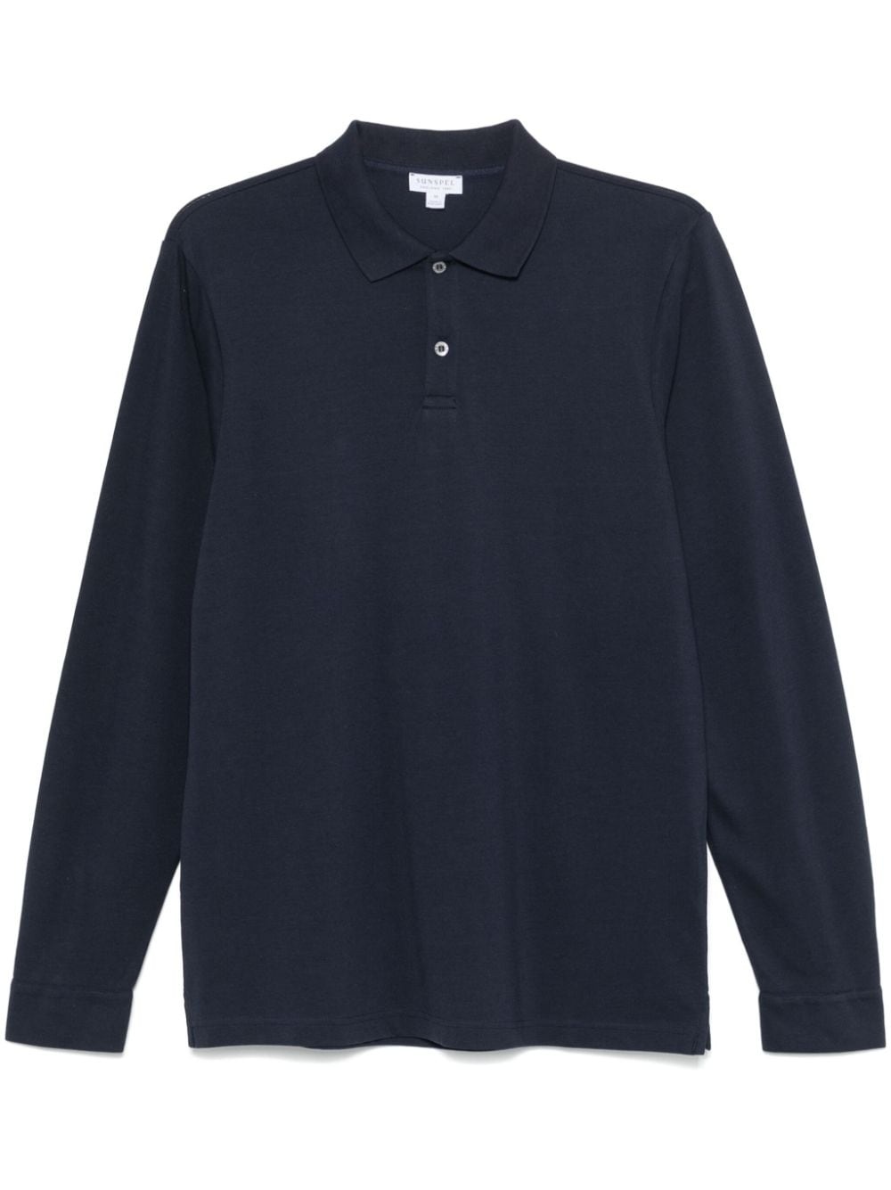 long-sleeve pique polo shirt Highlights - Navy blue - Supima cotton - Pique weave - Long sleeves - Short front button fastening - Polo collar - Buttoned cuffs - Short side slits - Straight hem Imported Composition Supima Cotton 100% SIZE & FIT FittingInformation Designed for a slim fit, this polo shirt offers a comfortable fit that sits just away from the body Made from a midweight non-stretch fabric, this piece offers minimal elasticity when worn