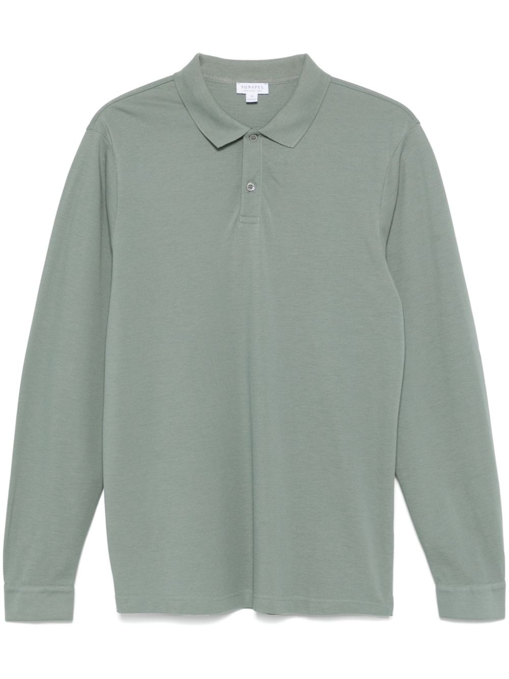 long-sleeve pique polo shirt Highlights - Mint green - Supima cotton - Pique weave - Long sleeves - Short front button fastening - Polo collar - Buttoned cuffs - Short side slits - Straight hem Imported Composition Supima Cotton 100% SIZE & FIT FittingInformation Designed for a slim fit, this polo shirt offers a comfortable fit that sits just away from the body Made from a midweight non-stretch fabric, this piece offers minimal elasticity when worn