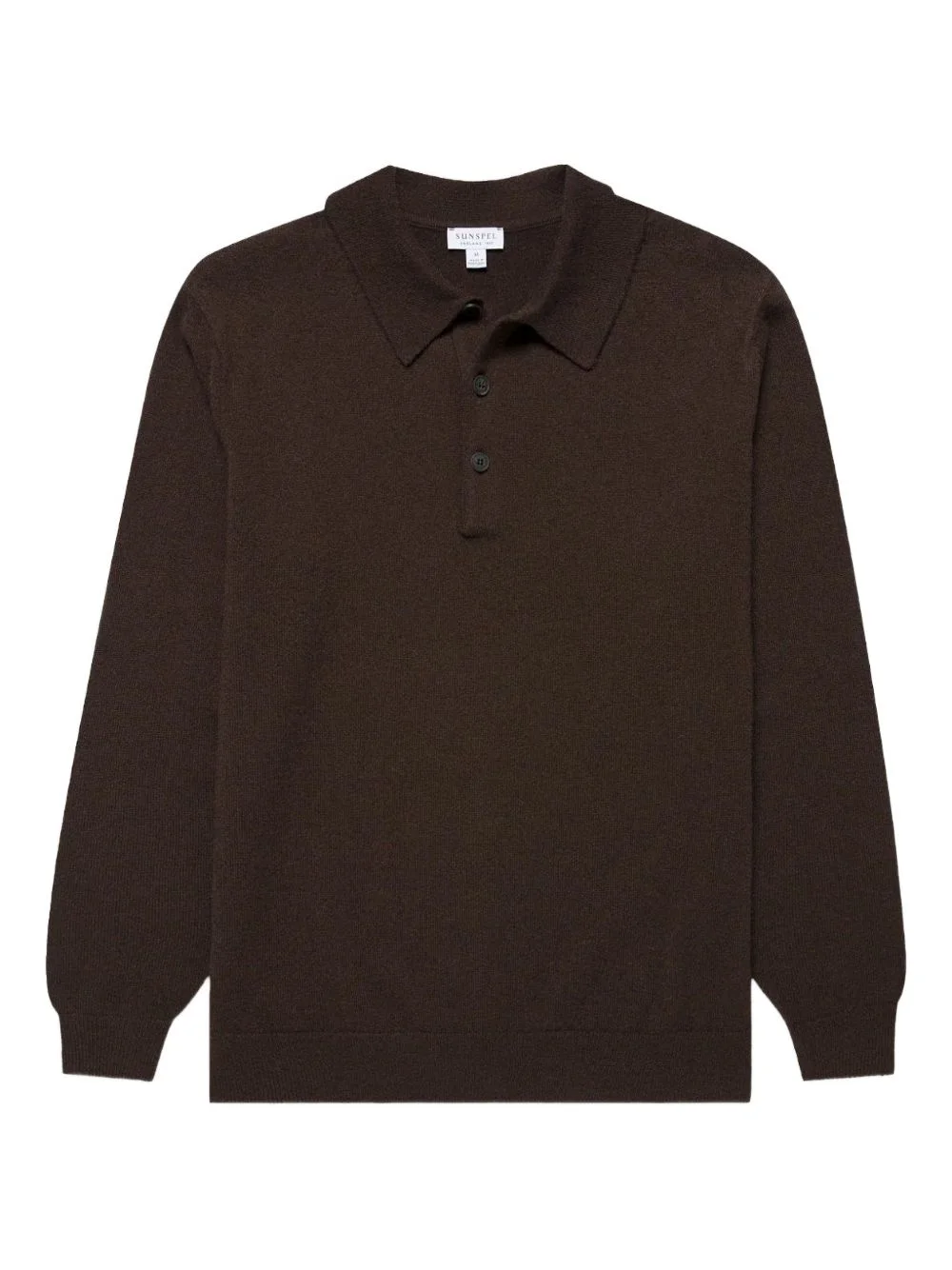 ribbed-knit polo shirt Highlights - Truffle brown - Button fastening - Long sleeves - Point collar Imported Composition Cashmere 100% Washing instructions Hand Wash