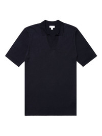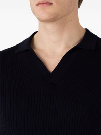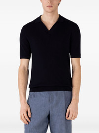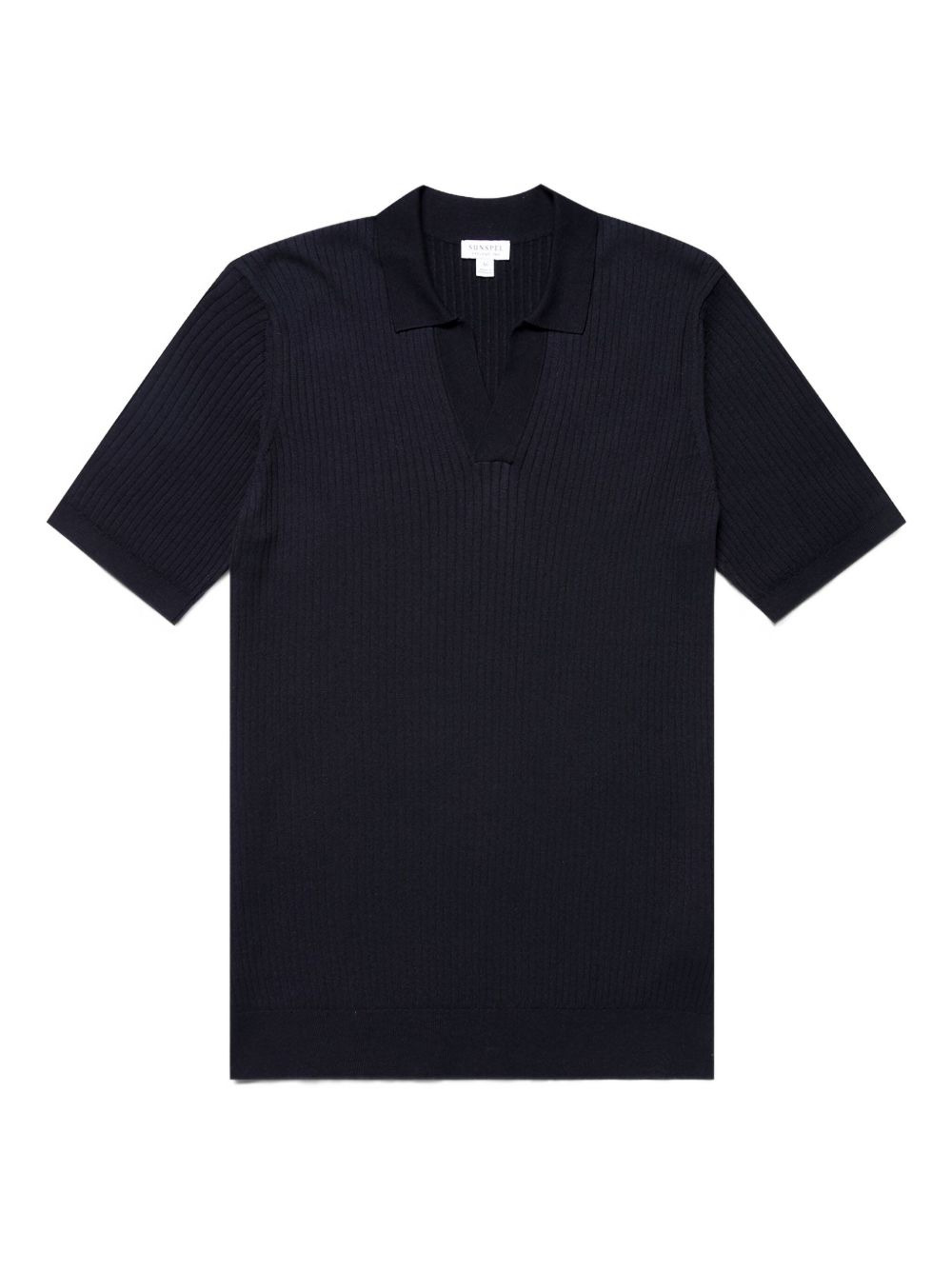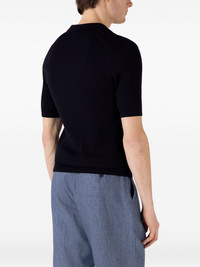 ribbed short-sleeve T-shirt Highlights - Navy blue - Ribbed knit - Short sleeves - Spread collar - V-neck Imported Composition Silk 55%, Cotton 45% Washing instructions Read Manufacturer Guidelines