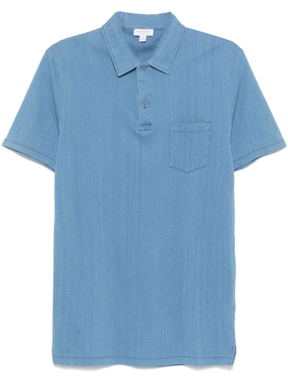 Riviera polo shirt Highlights - Cerulean blue - Short front button fastening - Chest patch pocket - Short side slits - Short sleeves Imported Composition Cotton 100% SIZE & FIT Model measurements Height 6 ft 1 in(1.85 m) Bust/Chest 38.58 in(98 cm) Hips 37 in(94 cm) Waist 30.31 in(77 cm) FittingInformation Designed for a regular fit, this polo shirt offers a comfortable loose fit throughout the body Made from a midweight non-stretch fabric, this piece offers minimal elasticity when worn