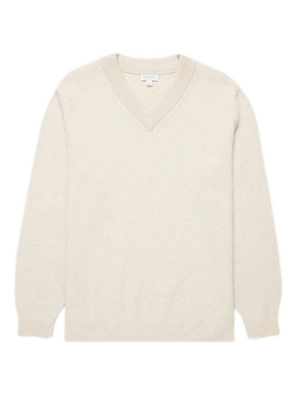 wool V-neck sweater Highlights - Beige - V-neck - Ribbed trim - Long sleeves - Wool Made in United Kingdom Composition Lambs Wool 100% Washing instructions Read Manufacturer Guidelines