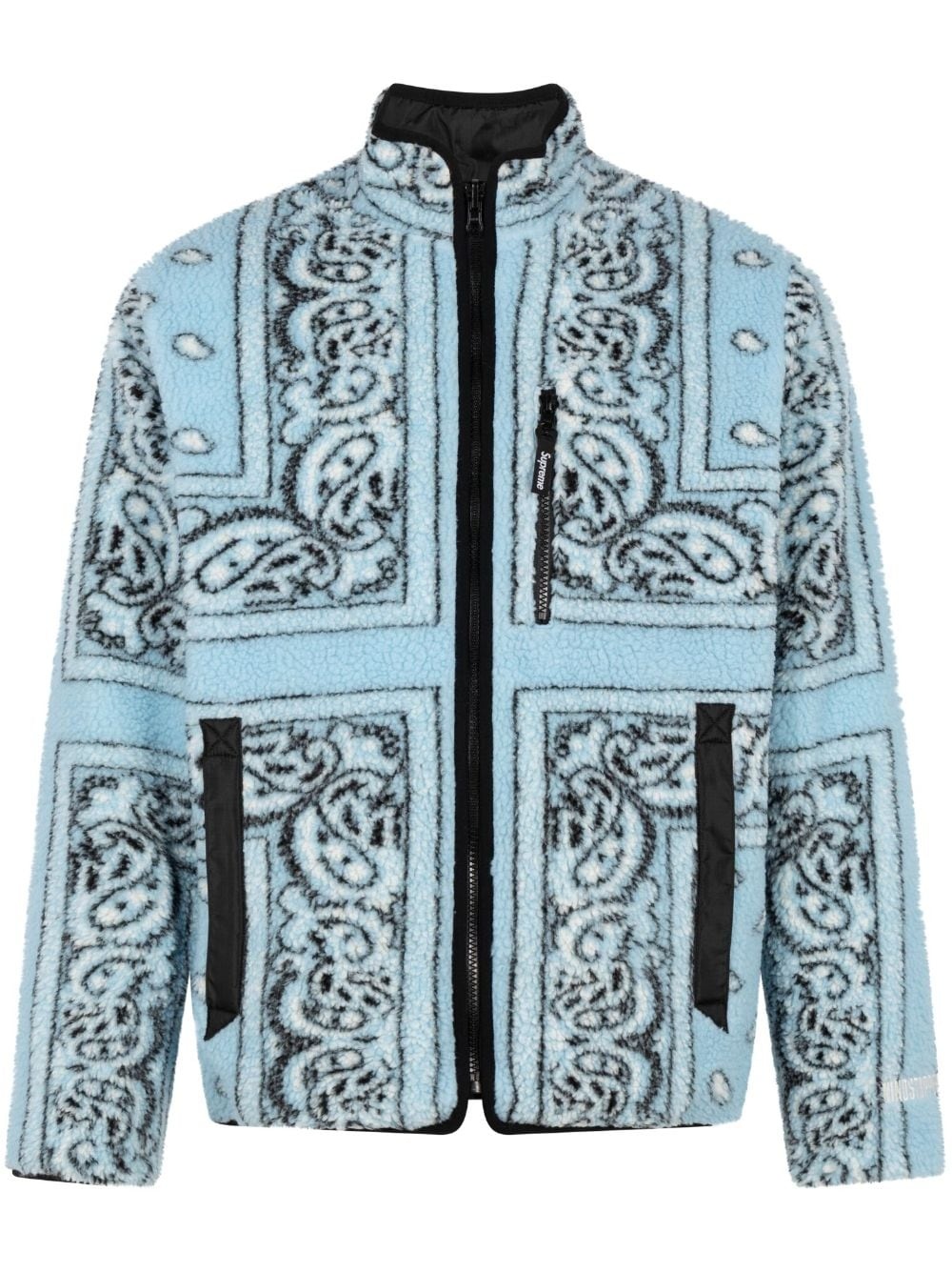 bandana-print reversible fleece jacket This blue and black reversible Supreme jacket is crafted from Gore Winstopper® fleece with a ripstop lining. The plush outer is printed with a bandana motif to reinforce its outdoorsy inspirations. Highlights - Light blue - Black - Cotton - Reversible - Gore winstopper® fleece/ripstop - Bandana print - High neck - Long sleeves - Zip-fastening chest pocket - Two side zip-fastening pockets - Two front welt pockets - Front zip fastening Imported Composition Cotton 100%