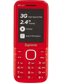 BLU burner phone Never mind the reasons behind it — having an unlocked phone is never a bad idea. The Supreme BLU Burner Phone stands to be the ultimate "bat line". Available in red, it's a fairly standard 3G GSM affair, with a camera on the back, a colour screen, a 16GB memory card pre-installed, and dual SIM capability so you can swap numbers at will. Imported Composition Aluminium 100%