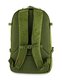 Box Logo backpack The olive green Supreme Backpack is a staple for skaters, students, and anyone with gear that needs to be stored. The backpack comes with a large main compartment and an external zip-entry pocket for laptops and other storage. Ergonomically-designed shoulder straps give comfort, while side straps secure your skateboard. A mesh layer allows for breathability on the back. The Supreme Backpack comes with an all-over tonal branding pattern that features the word “Supreme” upside down and right side up, as well as the standard white Supreme box logo. Imported Composition Nylon 100%, Polyester 100%